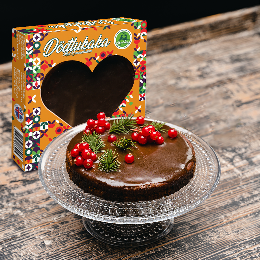 Date cake with caramel sauce