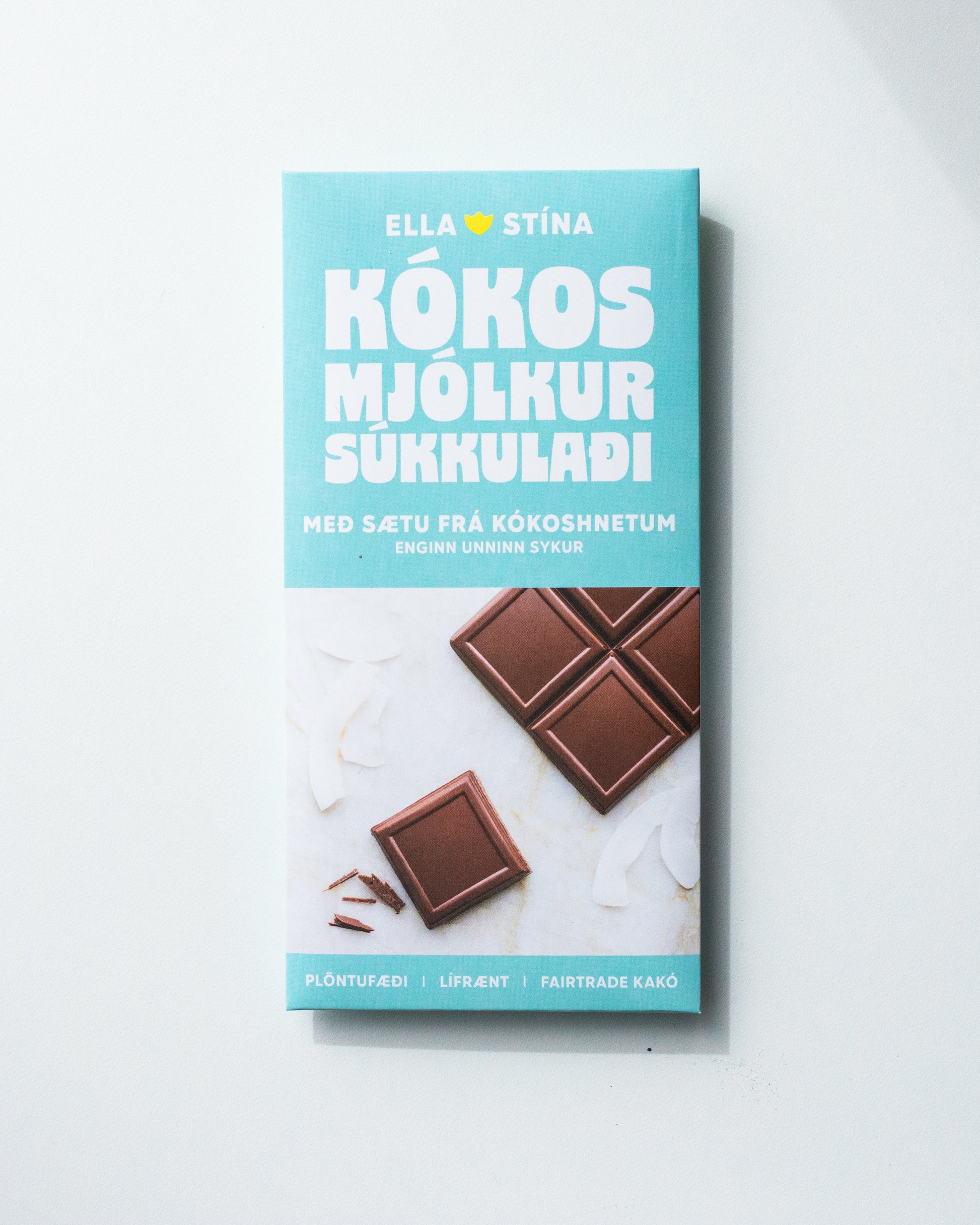 Hrásykur, kakómassi,kókosmjólkurdurft(15%), kakósmjör, ýruefni(sólblómalesitín). Kakó(44% lágmark) úr lífrænum landbúnaði.