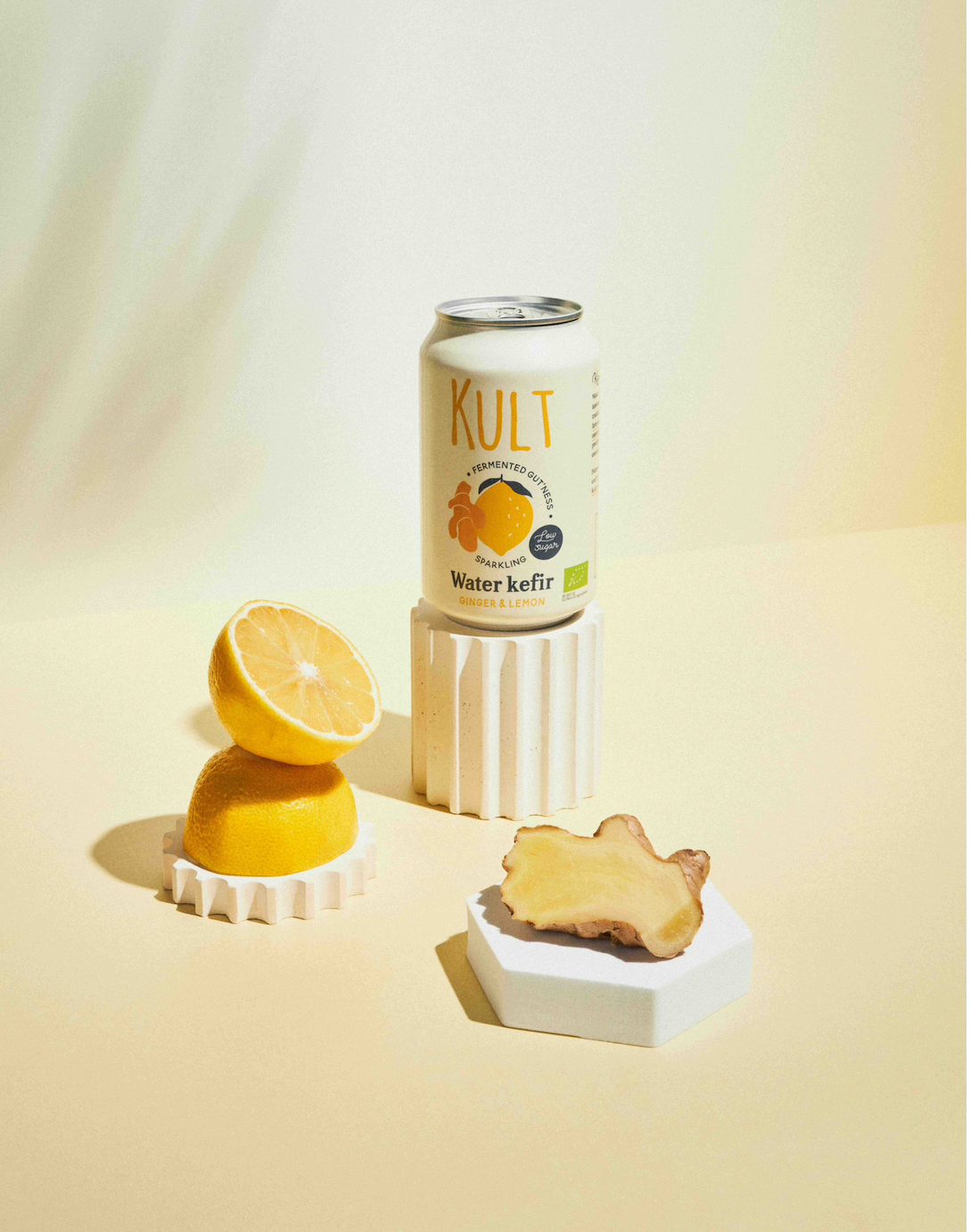 Vatnskefír (vatn, vatnskefírmenning, hrásykur* (að hluta umbreyttur við gerjun), sítrónusafi úr þykkni*), ástaraldinsafi (2%), grænt te-þykkni, Simcoe-humar (0,05%)*